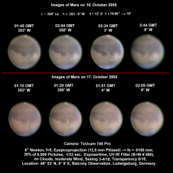 Mars am 20. Oktober 2005 Zentralmeridian: