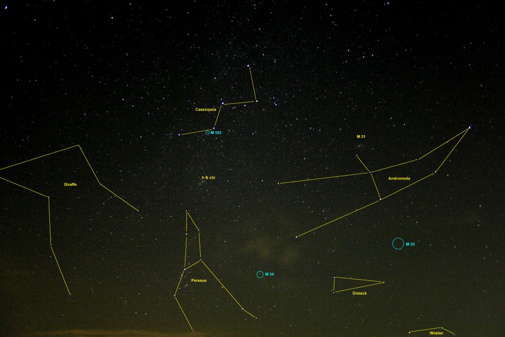 gestellt und grob die Cassiopeia angepeilt. Mit Hilfe des Programms Remote