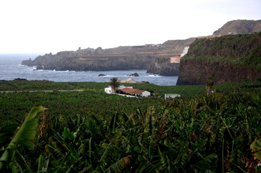 Bananenstauden stehen. Der Blick von der Terrasse geht Richtung Nordosten.