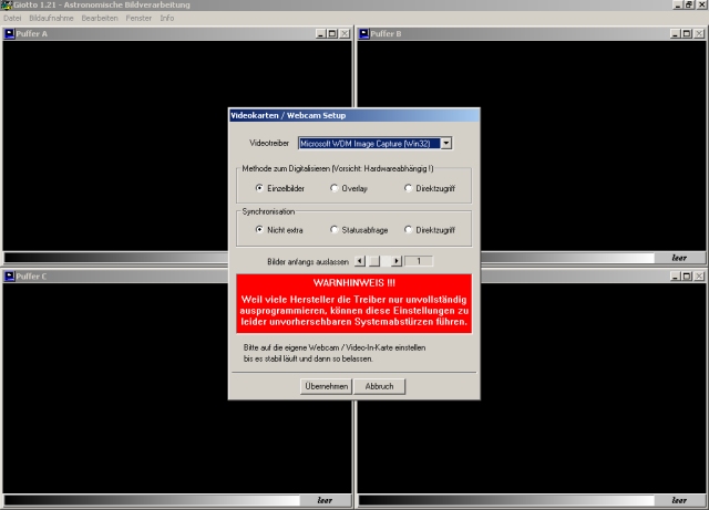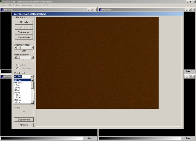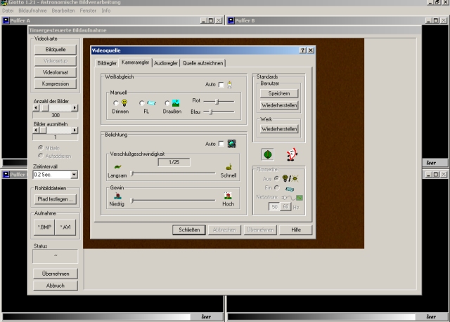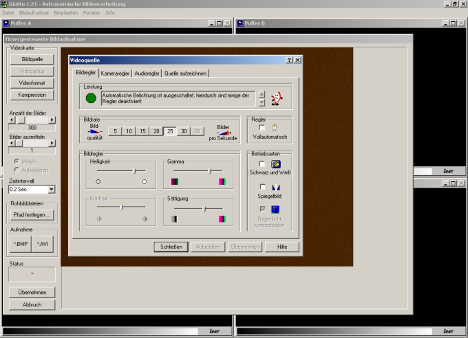 Giotto starten und im Register "Bildaufnahme" auf
