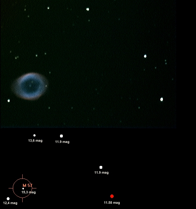 an den 7" Starfire und stellte M57 ein. Dann ging es per Starhopping