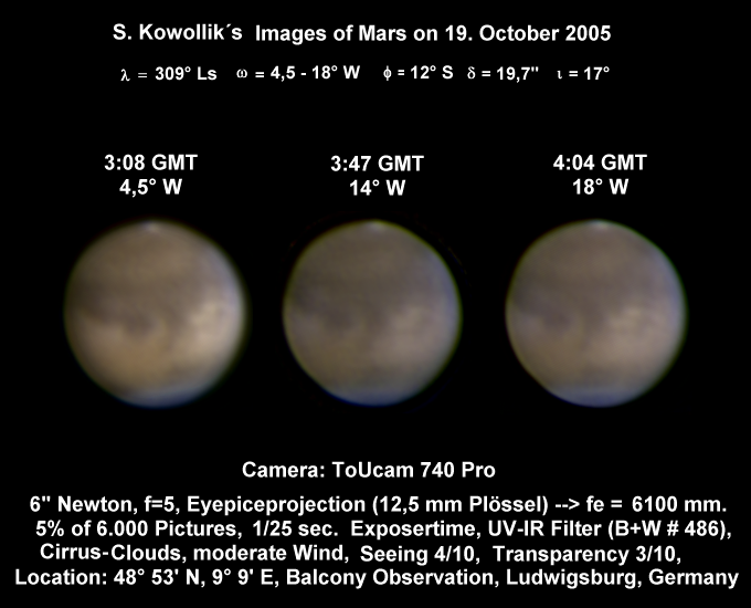 Mars am 19. Oktober 2005 Zentralmeridian: