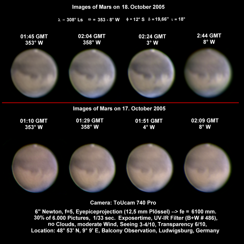 Mars am 18. Oktober 2005 Zentralmeridian: