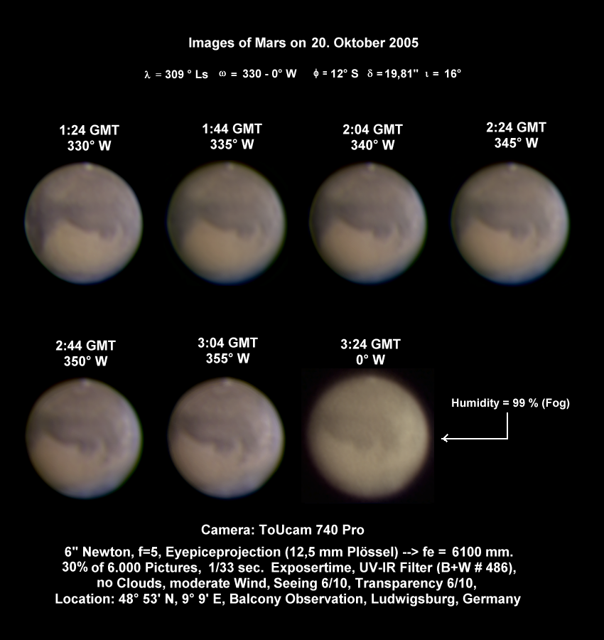 Mars am 20. Oktober 2005 Zentralmeridian: