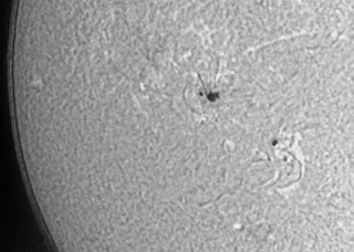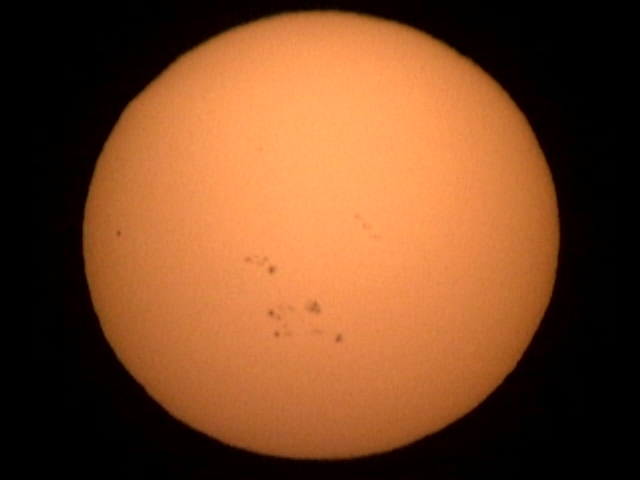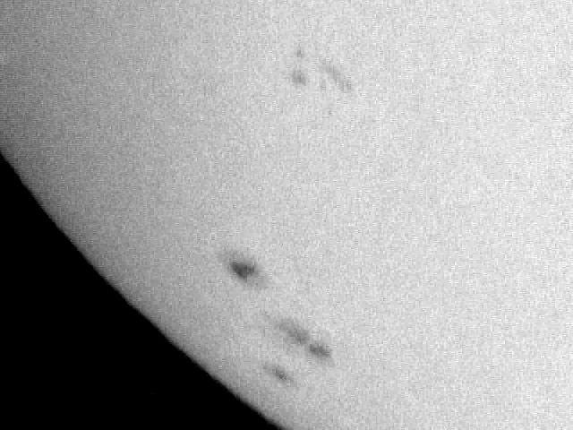 Sonnenflecken. Da die Sonne zum Aufnahmezeitpunkt bereits ca. 4°
